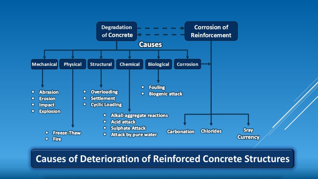 تحدث هذه العيوب بسبب الظروف البيئية التي تحدث للبناء، وشيخوخة البناء، وظروف التشغيل